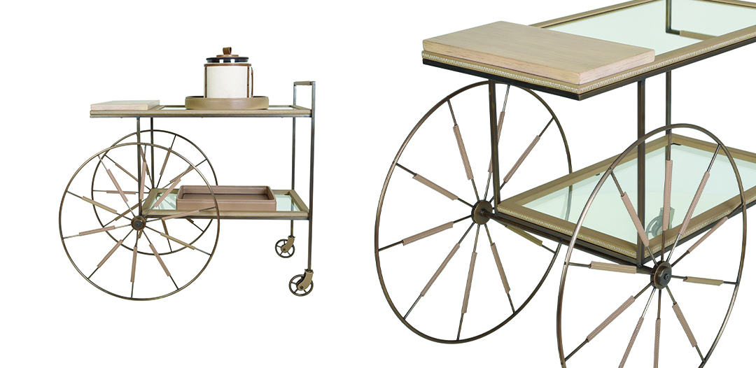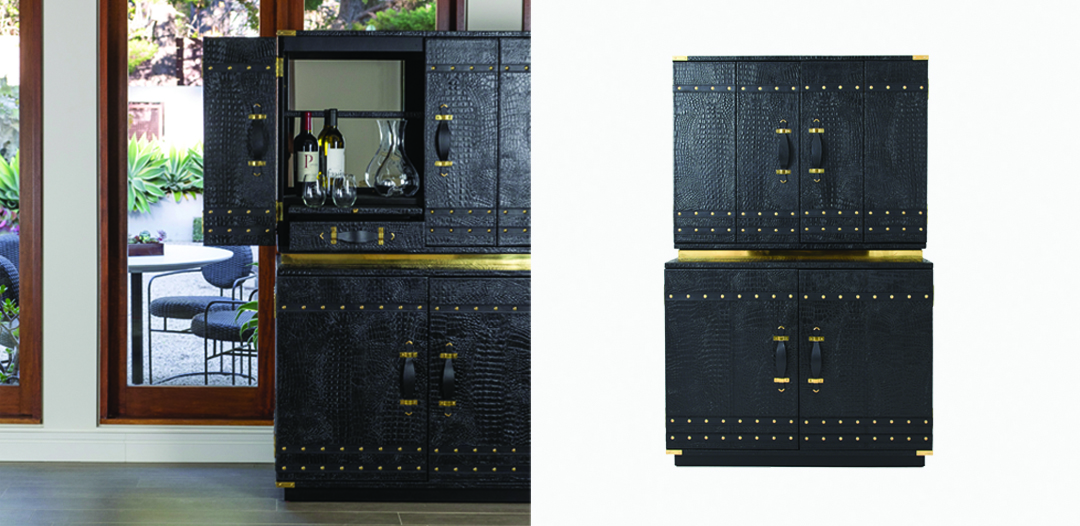 If, instead, you are looking for a stationary bar to headline your furniture line-up, a cabinet bar may be just your style. Sleek and unobtrusive when closed, this option combines practicality with functionality. Open it up and get the party started, with a double-decker space for glassware and snacks below, a full array of bottles on top, and ample room for a wine fridge on the base. I’ll take my martini shaken, not stirred.